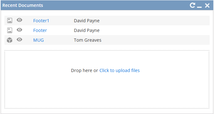 Recent documents widget simply displays the last 3 documents accessed by any user of the data.
